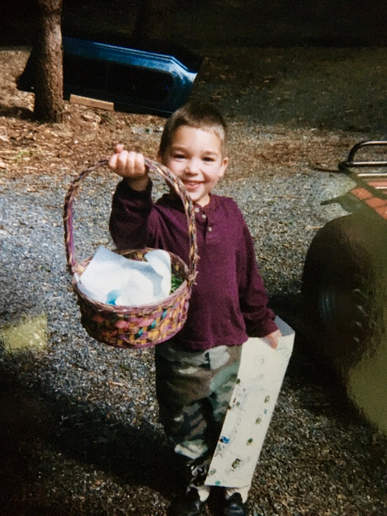 Easter 1999. Josiah with his basket and treasure map. I drew the map to make his Easter egg hunt more fun. At the time we lived on 90 acres of forested wilderness. Recently I found a letter Josiah wrote when he was in his early 20s. In it, he mentioned how much that Easter and the map meant to him. As I continue to piece together the memories, his words and these photos mean more than ever to me.