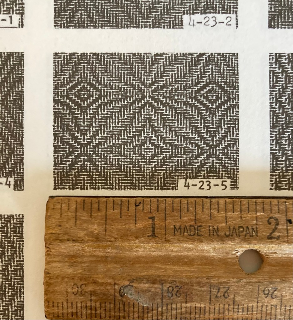 I have a book of patterns, and when I say patterns I don’t mean like sewing patterns, not ones that tell you what to make or how big or how long or anything else. Instead, Marian Powell’s 1000(+) Patterns gives you a tiny sample, not much bigger than a square inch, and corresponding page that tells you how to create it. After choosing one, I only have to pick which design to make. I pick the colors and then do all of the planning.